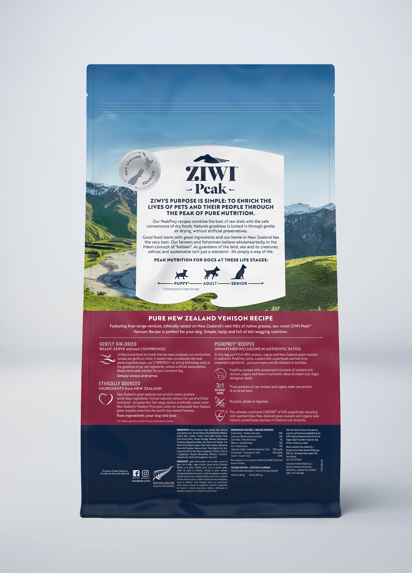 As a novel single protein food. ZIWI Peak® Venison is ideal for dogs with sensitive stomachs. With a recipe like this. nothing will hold you and your companion back from life’s adventures!