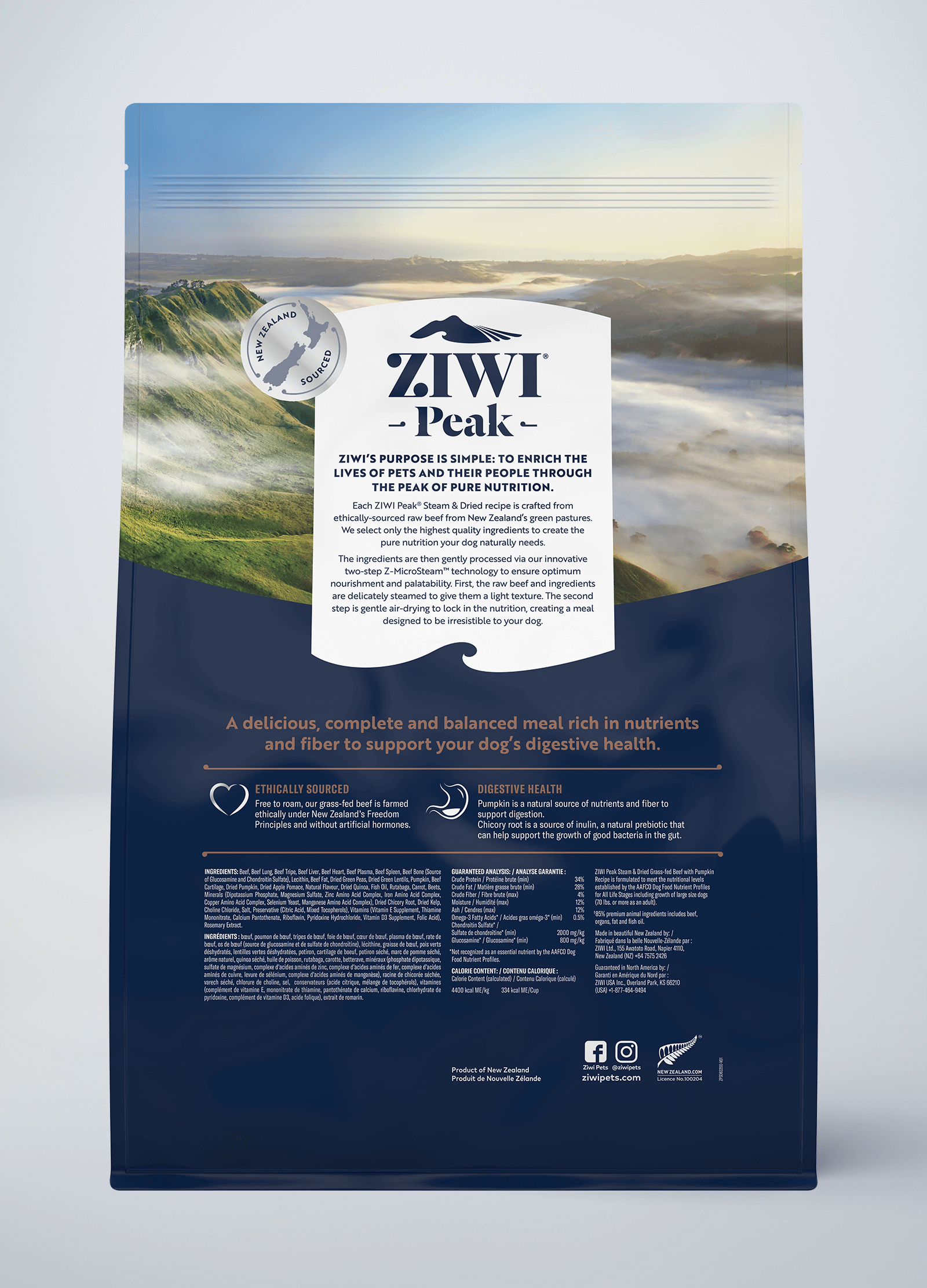 Crafted from ethically-sourced raw beef from New Zealand’s green pastures with pumpkin and chicory root to support digestive health. Delicately micro-steamed then gently air-dried via our innovative two-step Z-MicroSteam™ technology to ensure optimum nourishment and palatability.