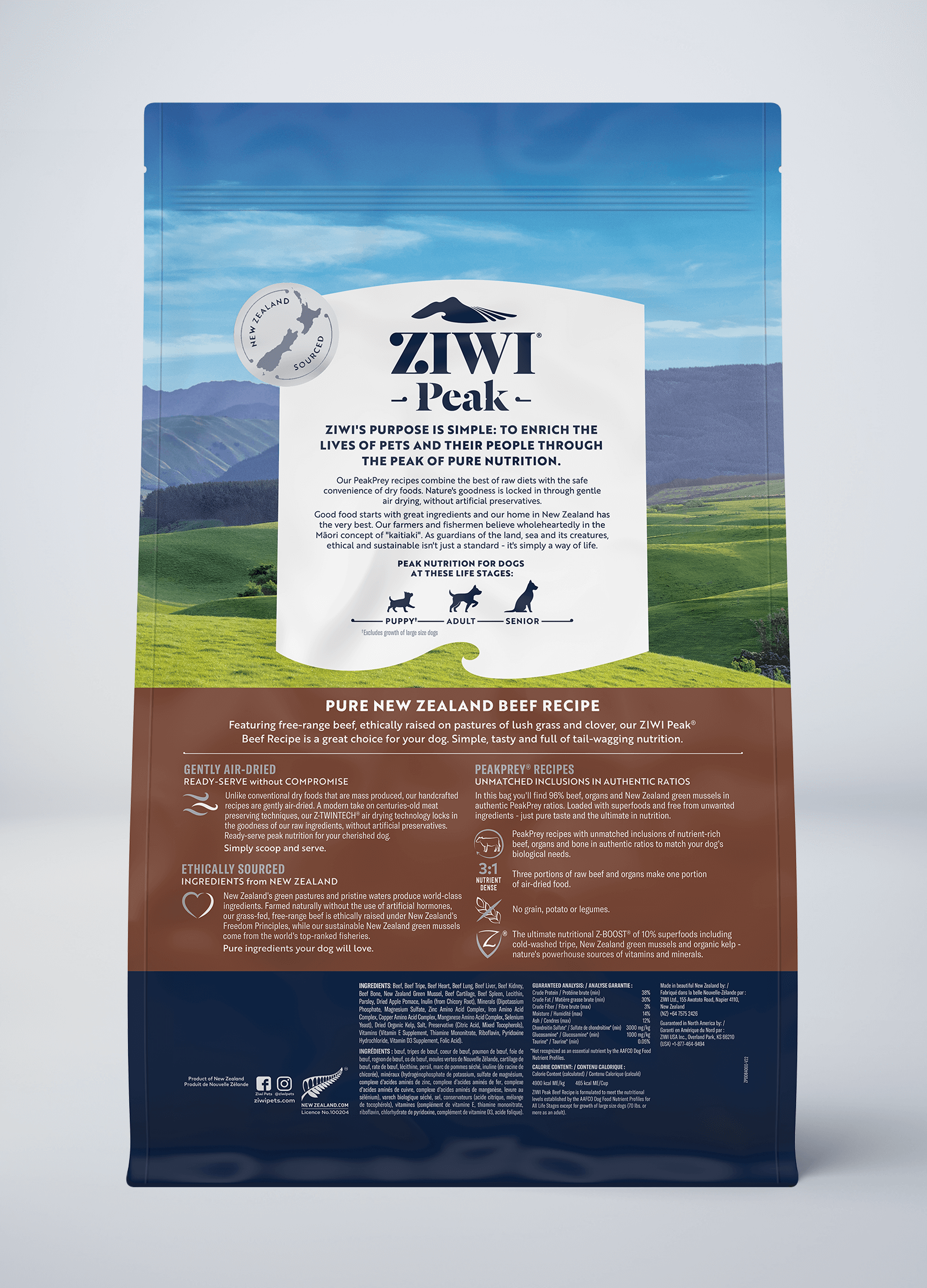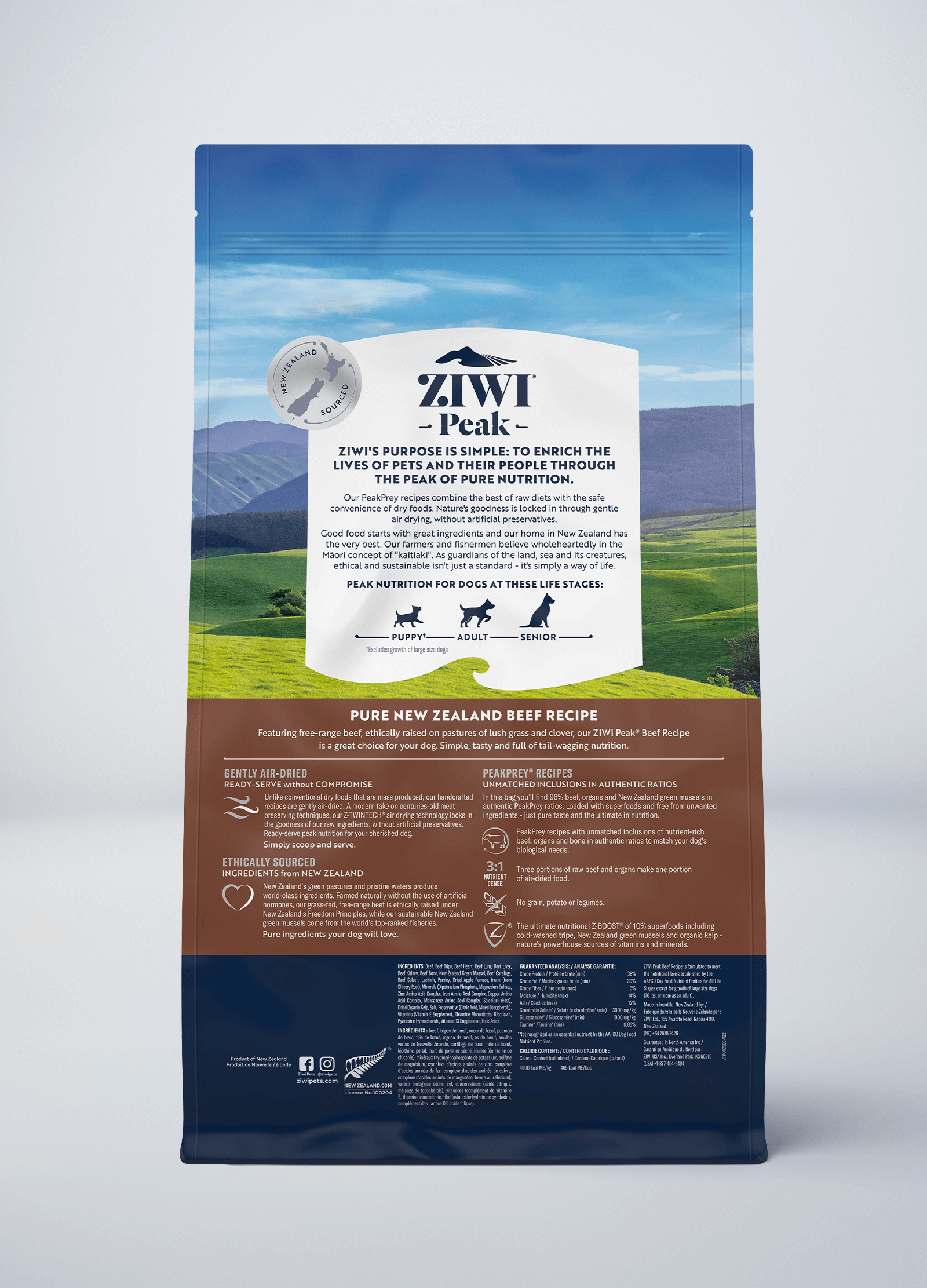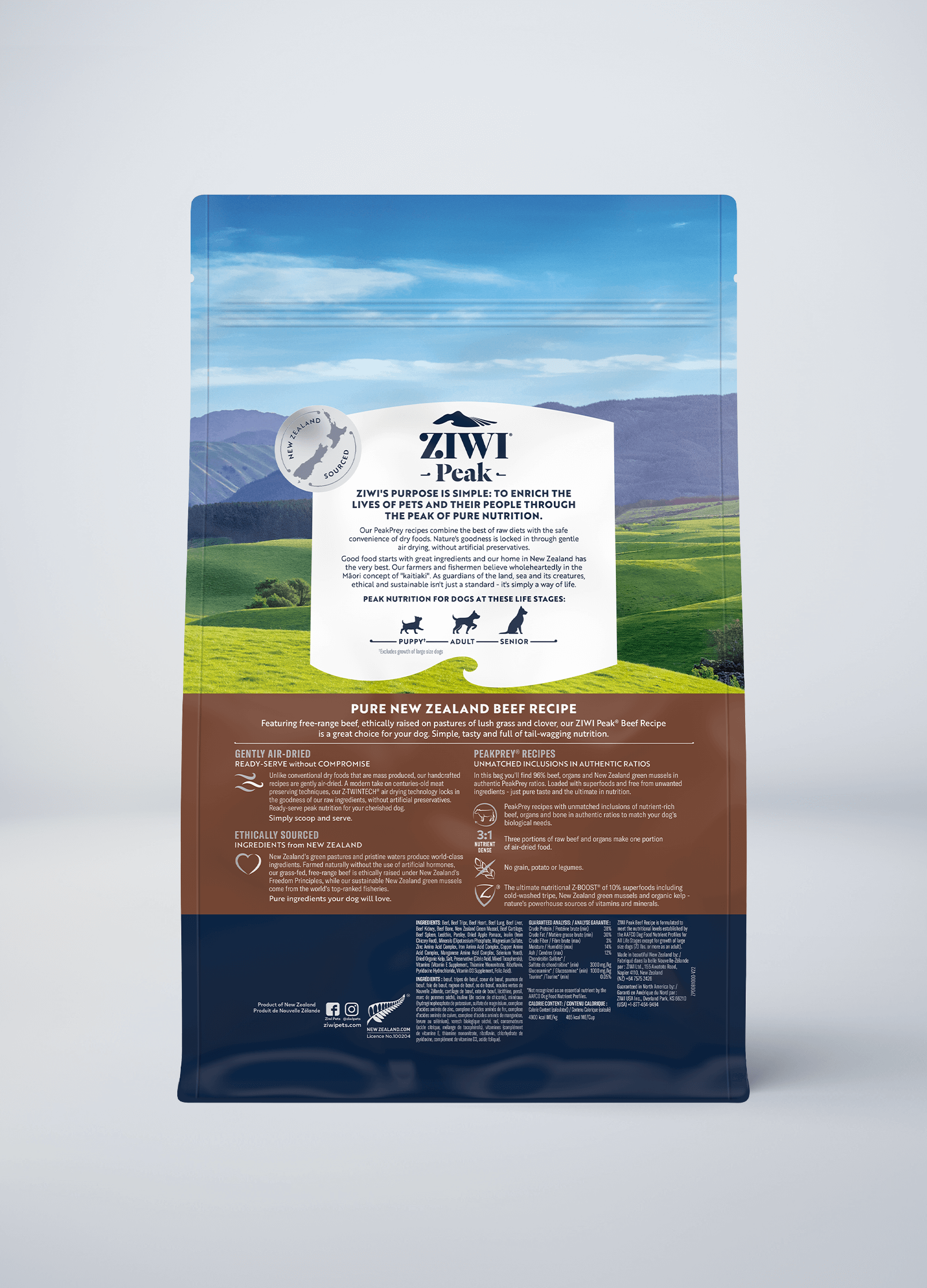 *Due to natural fluctuations in phosphorus and calcium levels. ZIWI Peak Air-Dried Beef recipe is not suitable as a full feed for a puppy that is expected to weigh 70lbs or more as an adult.